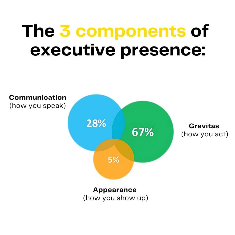 According to the Center of Talent Innovation executive presence consists of 3 parts: how you act, how you communicate and how you show up. |